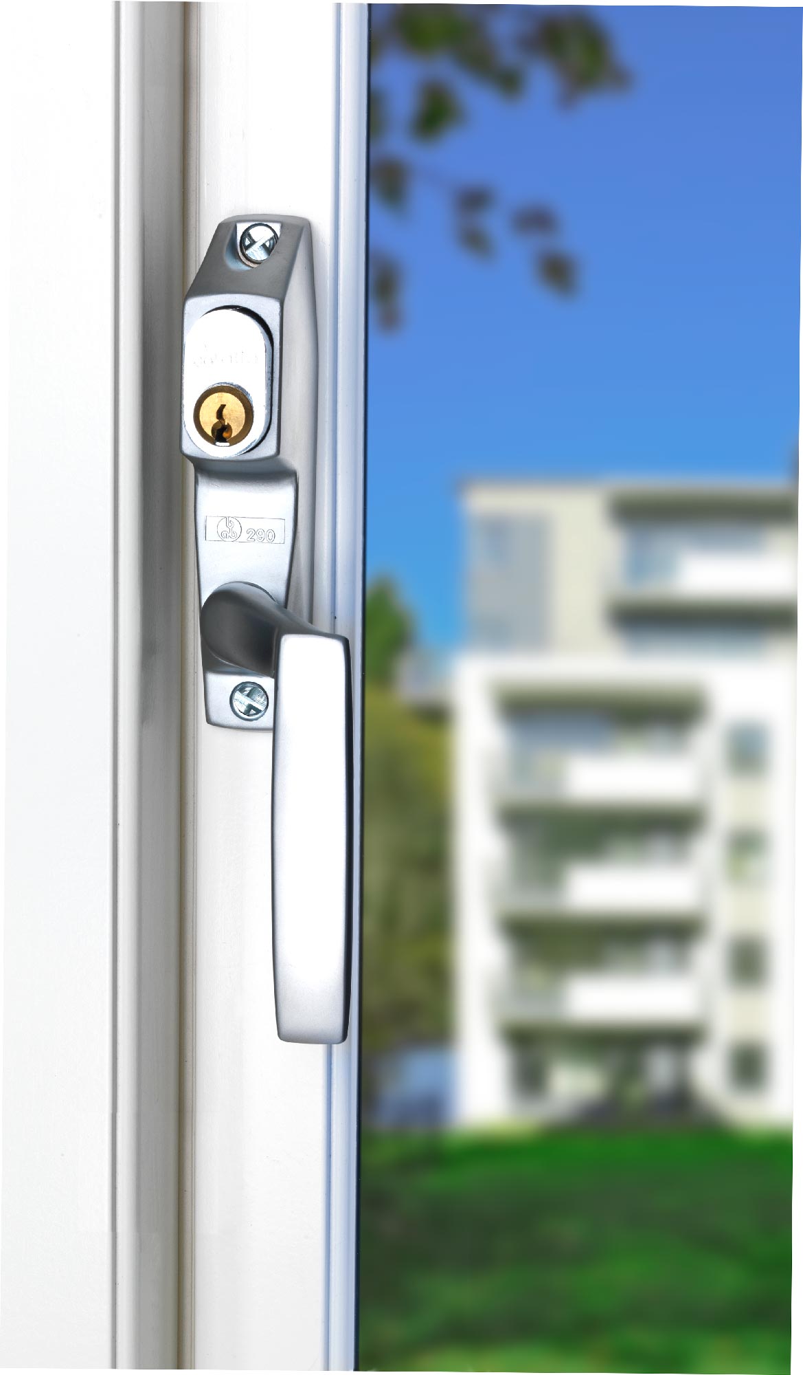 - Levereras med skruv för montering av handtag och cylinder samt fönsterdekal.